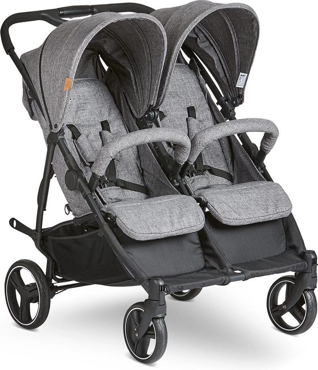 De Twin by Circle van ABC-Design is een compacte duo kinderwagen die je gemakkelijk en klein kunt opvouwen. De twee zitelementen kunnen onafhankelijk van elkaar in een comfortabele ligpositie worden gebracht, zodat het ene kind kan zitten en het andere kan slapen. De white wall all-terrain banden zorgen voor een comfortabele rit. De zachte gevoerde zitjes van de duo buggy zijn bijzonder comfortabel. De rugleuning en de voetensteun kunnen in een vlakke ligpositie worden gezet. De kinderen worden beschermd door grote, uitklapbare wandelwagenkappen die tegen weer en wind beschermen en voorzien zijn van UV-bescherming 50+. De 5-puntsgordel en de gevoerde veiligheidsbeugels houden de kinderen veilig in het zitje.