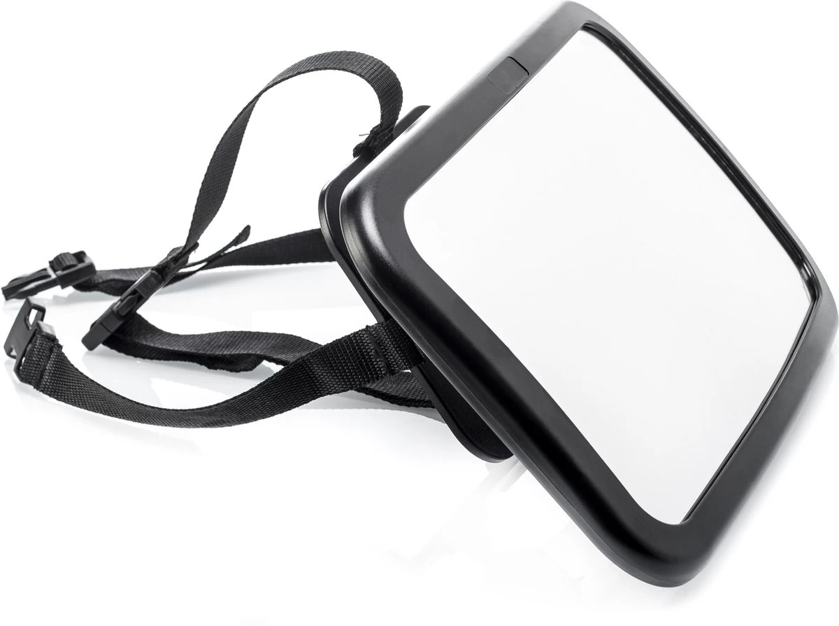 De babyspiegel bevestig je eenvoudig met verstelbare banden op de hoofdsteun van de achterbank. Zo kan de baby naar zichzelf kijken – en zich vermaken – terwijl jij ook perfect zicht hebt op je kindje.