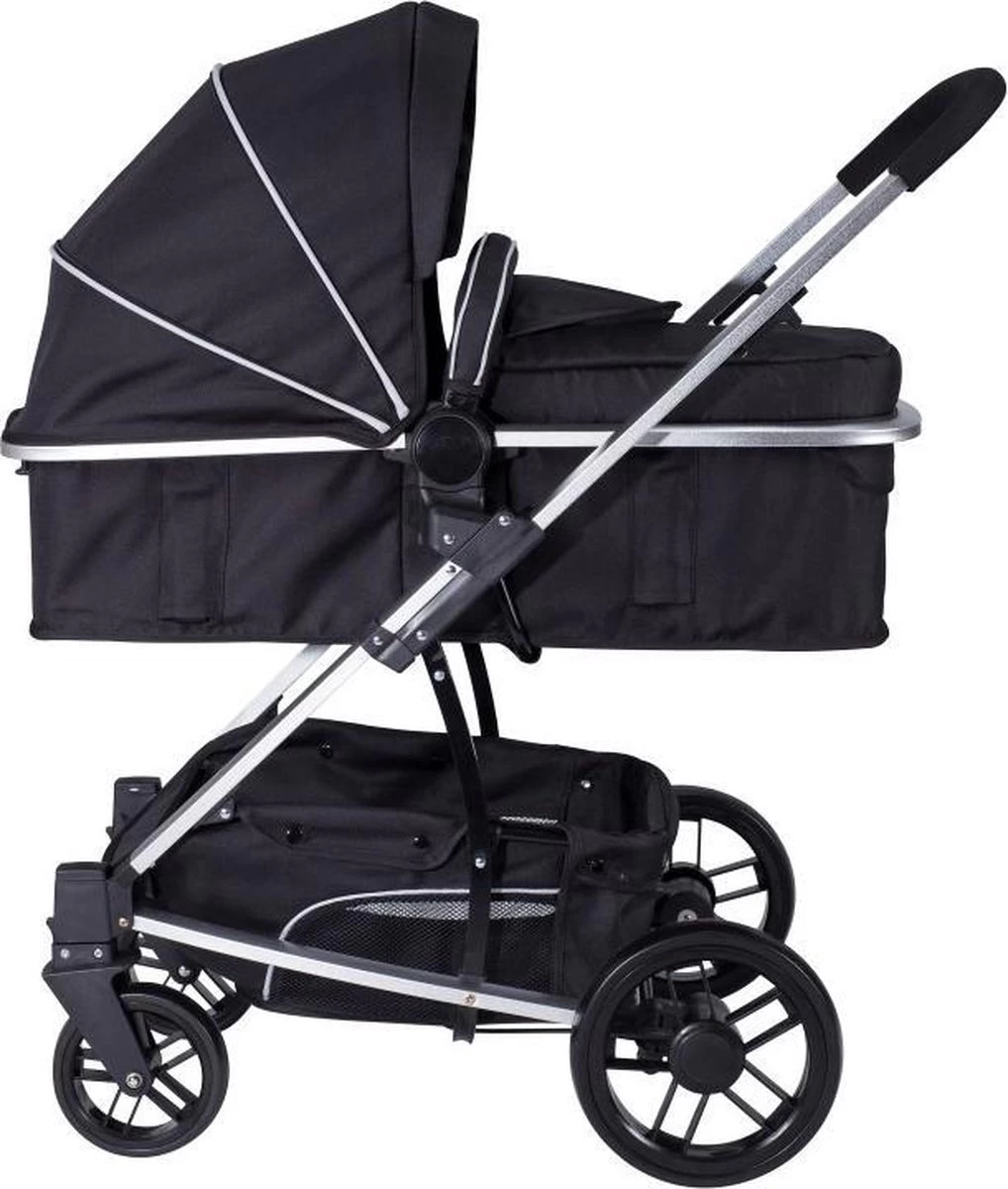 De combi kinderwagen wordt compleet geleverd met wandelwagen welke om te bouwen is tot reiswieg, boodschappenmand, beenkap en GRATIS bijpassende verzorgingstas.