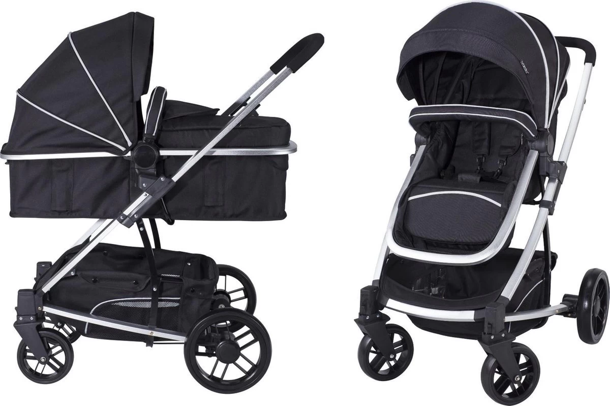 Deze voordelige combi kinderwagen heeft een compact opvouwbaar, lichtgewicht aluminium frame. De wandelwageninzet kan op twee verschillende manieren op het onderstel worden geplaatst. Op deze manier kan het kindje zowel naar u als van zich af kijken. De wandelwageninzet is makkelijk om te vormen tot een reiswieg.