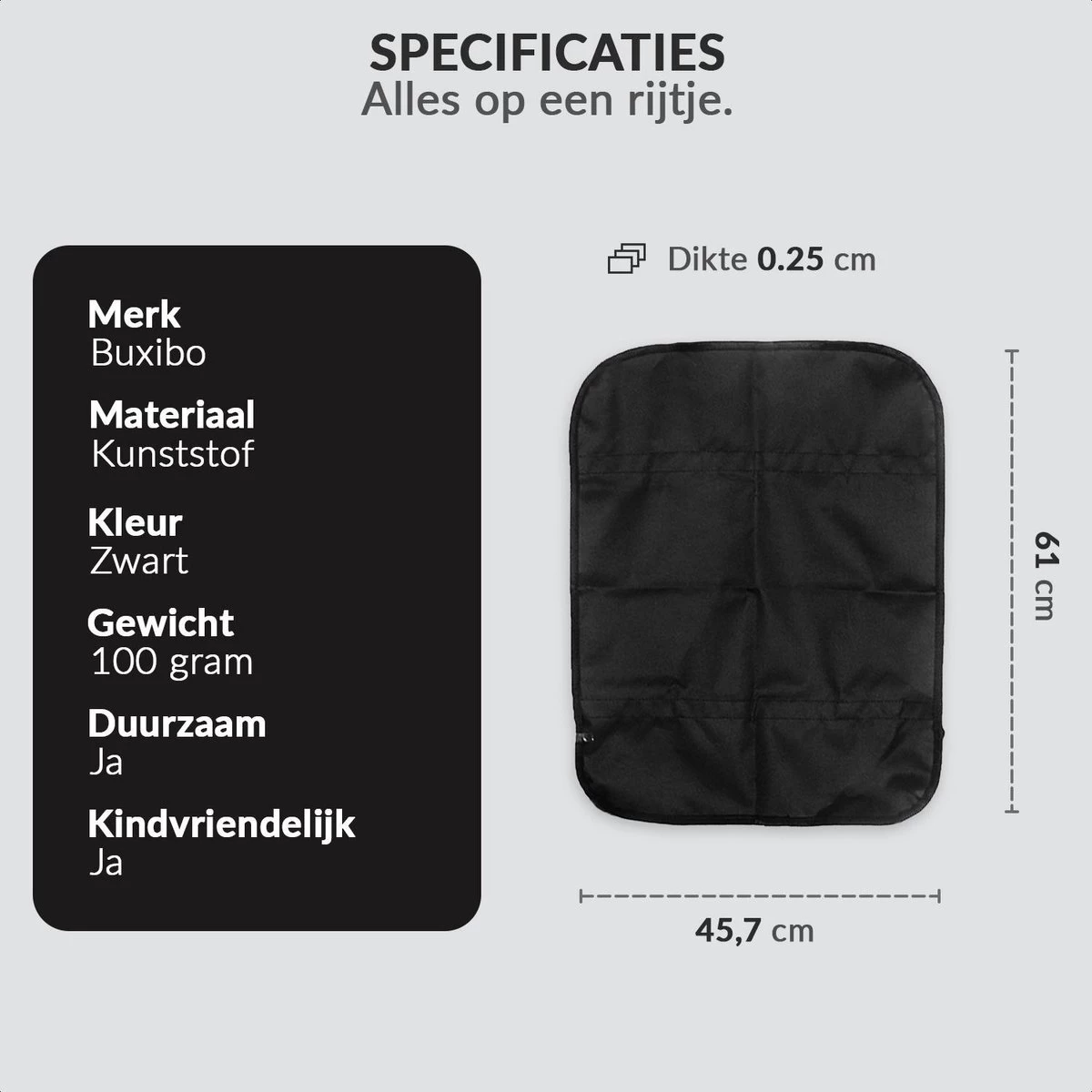 Iedereen met kinderen kent het wel, het moment dat je de kinderstoel omdraait en ze met de voeten bij de rugleuning van de stoelen komen. Dit betekent maar een ding, vieze stoelen. Al dat getrap en plaatsen van de voeten tegen de stoelen is een flinke zorgen voor veel mensen. Dit is echter makkelijk te verhelpen met deze geweldige autotrapmatten. Deze rugleuning hoezen zijn het ideale product voor jou! Met deze makkelijk te plaatsen hoezen kan jij gedag zeggen tegen al het onnodig boenen en schoonmaken. Het moderne design zorgt er ook nog eens voor dat het geen obstakel is voor het oog en goed past in alle auto’s.