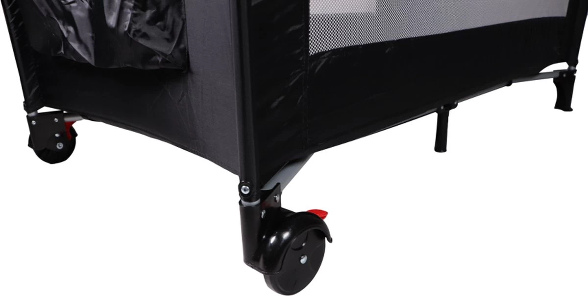 Het Ding Deluxe campingbedje wordt geleverd inclusief een praktische bodemverhoger (te gebruiken tot max. 9 kg). Hiermee verhoog je de bodem van het bedje zodat je niet meer diep voorover hoeft te buigen om je kleintje in en uit het campingbed te tillen. Het MamaLoes Deluxe campingbed beschikt daarnaast over een kruipluik met ritssluiting. Wanneer je dit luikje opent kan je kind zelf in en uit het campingbedje kruipen! Verder heeft het campingbedje een handige opbergzak aan de zijkant en 2 wieltjes (met rem) aan de onderkant zodat je hem eenvoudig kunt verplaatsen.