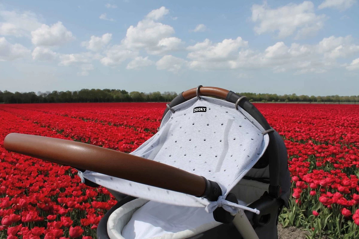 Met de Original Dooky creëer je gemakkelijk een rustige en vredige omgeving voor je kindje zodat het geen last heeft van licht, wind, zon, geluid, lichte regen en andere omgevingsinvloeden. De Dooky is universeel en eenvoudig binnen enkele seconden te bevestigen aan je autostoeltje groep 0+, de kinderwagen en zelfs de buggy! Door het unieke en geregistreerde ontwerp is de Dooky gemakkelijk in elke gewenste hoogte verstelbaar. Haal het zonlicht uit het gezicht van je kindje door simpelweg je Dooky naar de gewenste hoogte op te rollen (klittenband). Als je kindje slaapt, rol je hem helemaal naar beneden om zo een donkere en rustige omgeving te creëren. Met de koordjes aan de onderkant kun je je Dooky extra goed vastmaken indien het hard waait. De Dooky is gemaakt van 100% katoen, en heeft een UV-beschermende factor van UPF40+ en filtert meer dan 95% van de schadelijke UVA en UVB stralen. Laat je kind nooit zonder toezicht. Zorg dat je kind het niet te warm heeft: zet je kind niet lang in de volle zon en zorg altijd voor voldoende ventilatie.