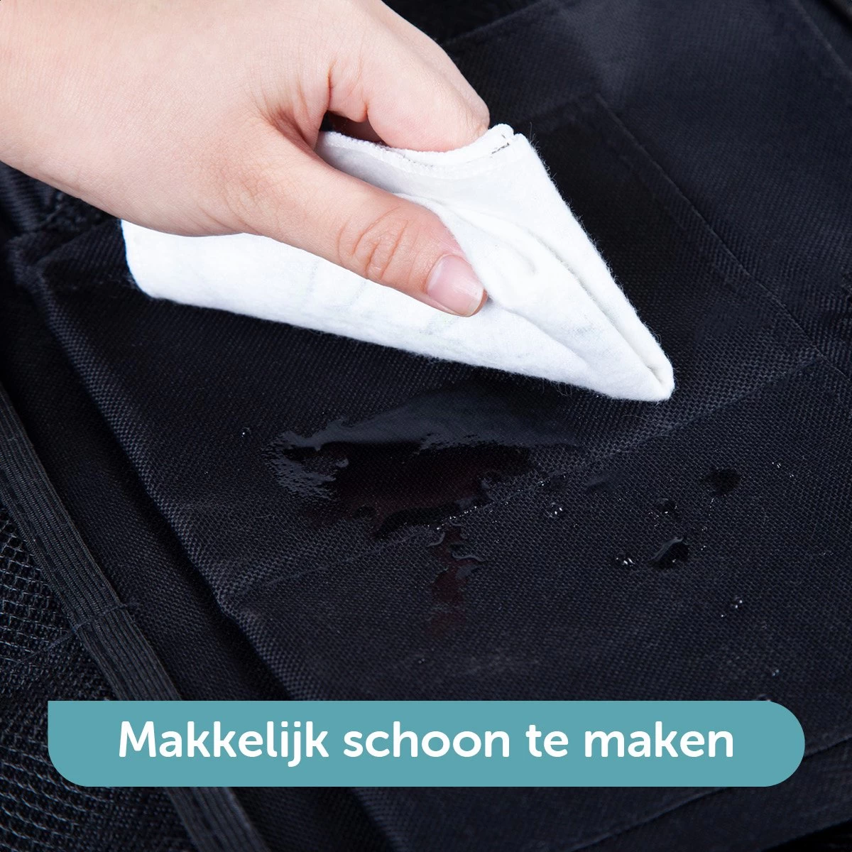 De ForDig auto organizer is gemaakt uit stevig 600D polyester dat niet kapot gaat en makkelijk schoon te houden is met een natte doek. De organizer is heel makkelijk te verplaatsen en te verwijderen. Door de universele maat past de ForDig organizer ook zonder problemen rond iedere autostoel.