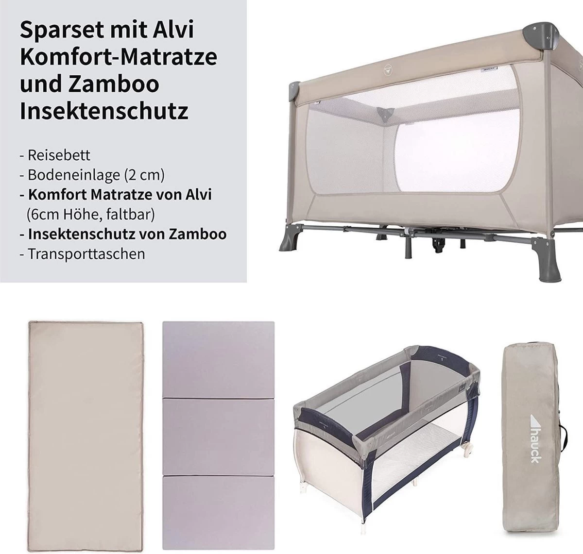 bestaande uit het Hauck Dream N Play campingbedje, een comfortmatras en een muggennet. Ideaal voor de volgende vakantie of bij grootouders of vrienden waar je kinderen af en toe overnachten. In een handomdraai is het bed op- en weer afgebouwd en in de bijgeleverde tas berg je het makkelijk op in de auto of in de kast.