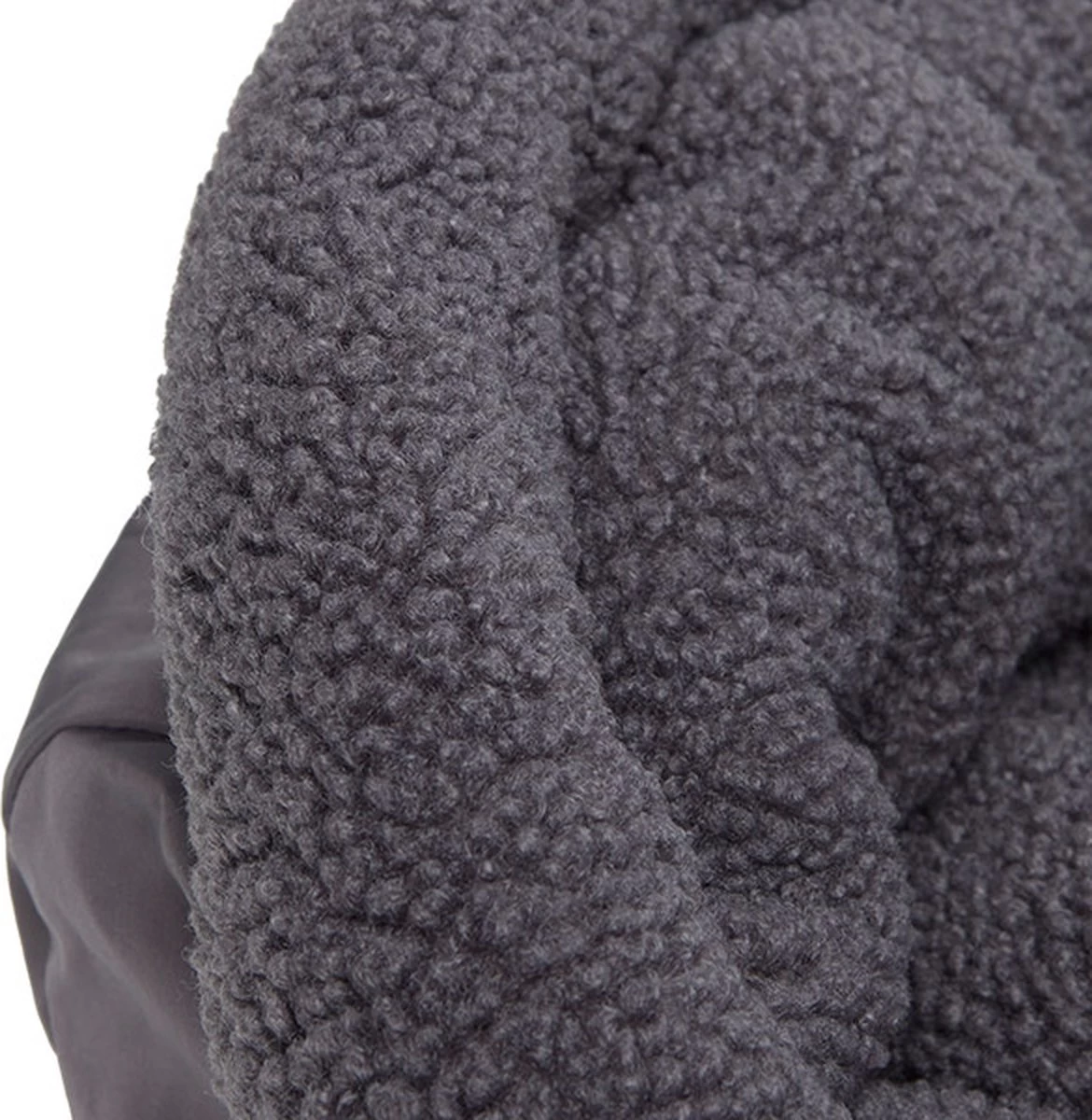 De buitenkant is gemaakt van 100% polyester. Door de PA coating is deze voetenzak waterafstotend. De binnenkant is gemaakt van het zachte Bouclé 100% polyester. Ook de vulling bestaat uit polyester.