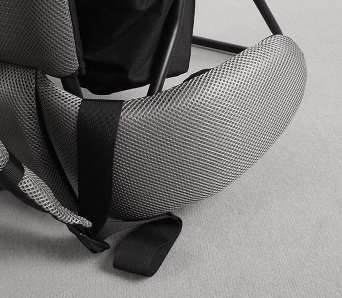 Het grote vak aan de onderzijde van de rugdrager is zeer geschikt voor het opbergen van luiers, doekjes, eten etc..