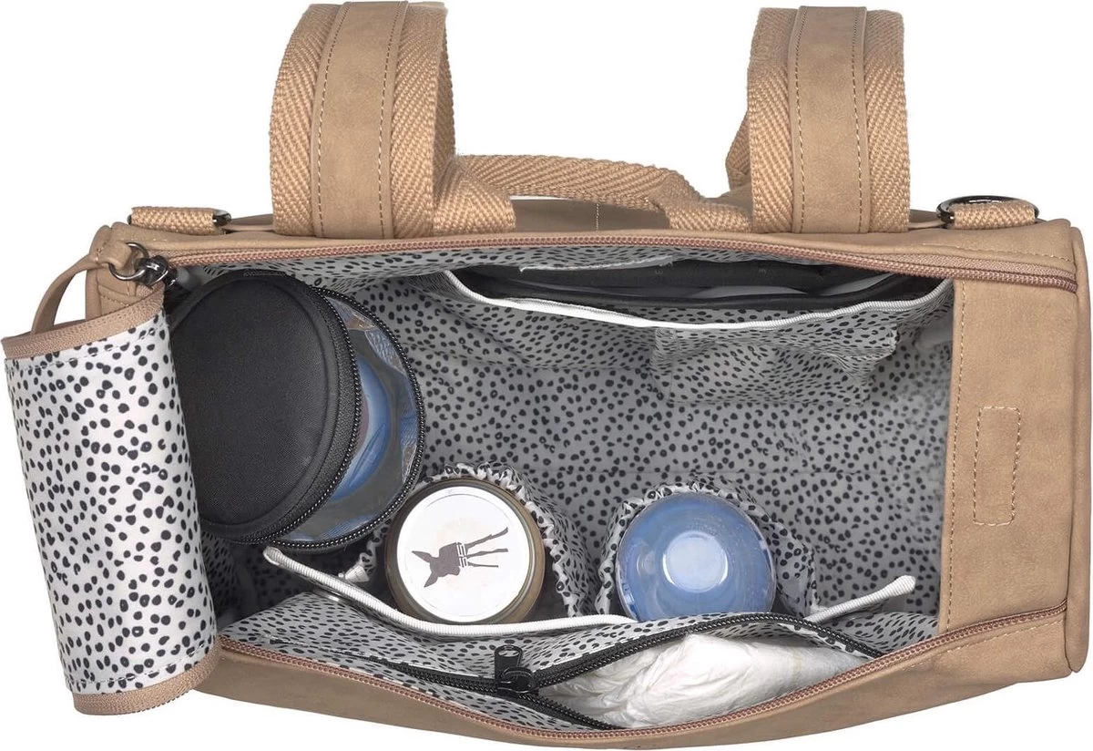 De verzorgingstas is erg ruim, maar tegelijk ook eenvoudig en discreet. Fans van een sober, strak design weten deze luiertas van Lässig vast te waarderen. What else? Wanneer je de tas op de grond zet, blijft hij vanzelf rechtop staan. Je sluit de tas met de dubbele ritssluiting, maar wanneer je gehaast bent, kan je de tas ook dichtmaken dankzij een magnetische sluiting.