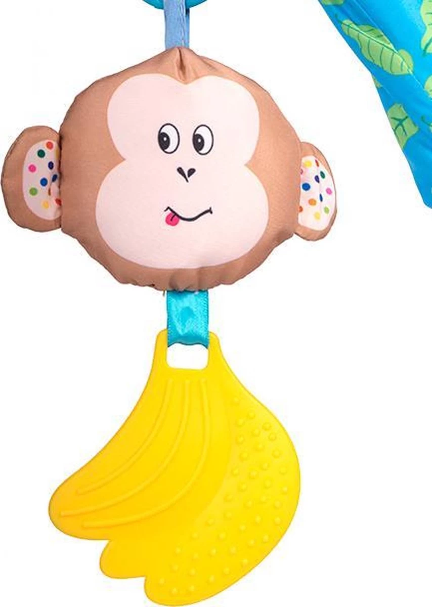 Een aap met plastic gele bananen, knijp erin voor een muziekje.