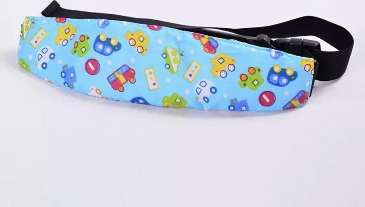 Auto hoofdsteun voor kinderen / hoofdband / slaapkussen blauw met autootjes erop