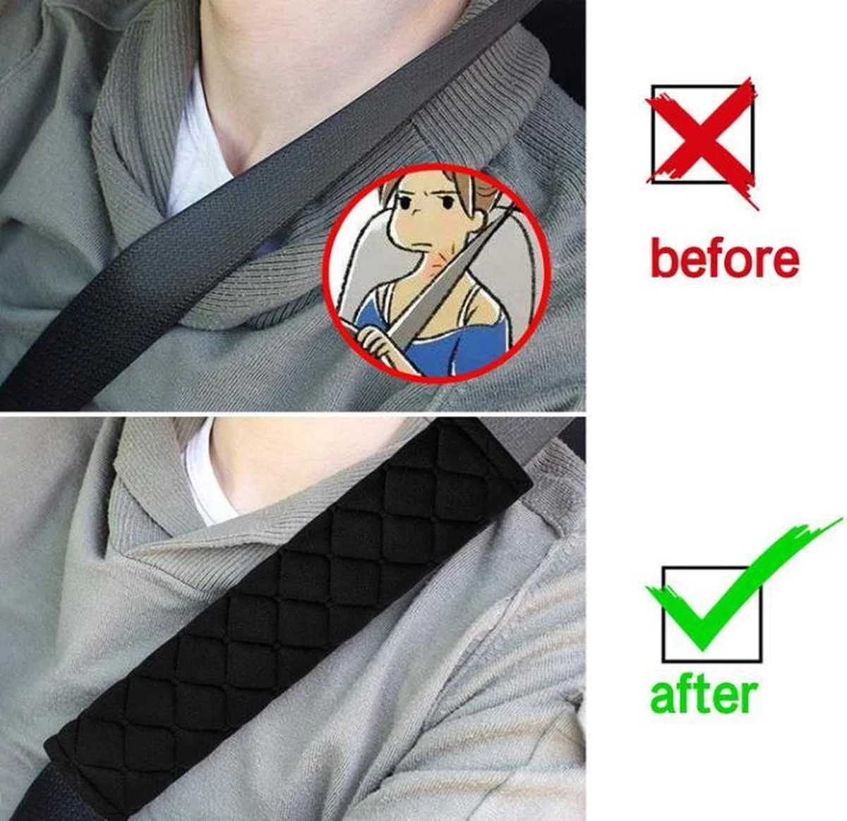 【GEMAKKELIJK TE GEBRUIKEN】 Geen extra gereedschap nodig. Wikkel ze gewoon om de veiligheidsgordel, zodra u uw gordel vastmaakt, kunt u deze gewoon in de positie schuiven die het beste bij u past.