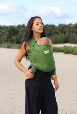 Rekbare Baby Draagdoek – Bam&Boe – Groen – Te Gebruiken Vanaf Geboorte – Van Super Zacht Bamboe