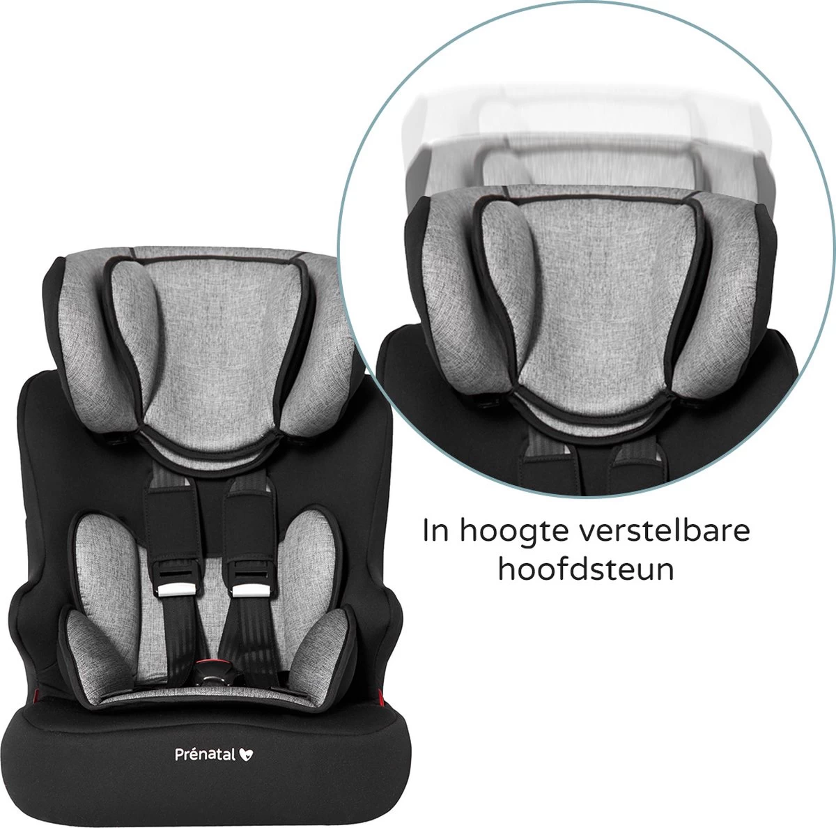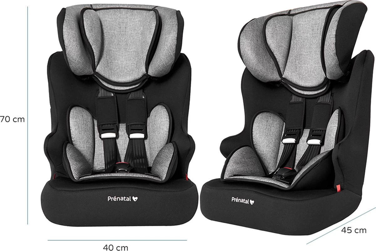 Deze praktische autostoel van Prénatal is geschikt voor kinderen van vanaf het moment dat je kindje zelfstandig kan zitten en met het hoofdje goed in de hoofdsteun past, tot circa 10 jaar (9 tot 36 kg – autostoel groep 1/2/3). In deze autostoel zit een zitverkleiner en een hoofdsteun inlay inbegrepen, zodat ook de kindjes die net zelfstandig kunnen zitten, goed in deze autostoel vervoerd kunnen worden. De hoofdsteun van de autostoel is in hoogte verstelbaar en de stoel is gemakkelijk in de auto te bevestigen met de 3-punts autogordel. Dankzij het 5-punts harnas zit je kindje veilig vast. De hoes is afneembaar en wasbaar. De autostoel voeldoet aan de Europese ECE R44/04 veiligheidsnorm en is geproduceerd in Frankrijk.
