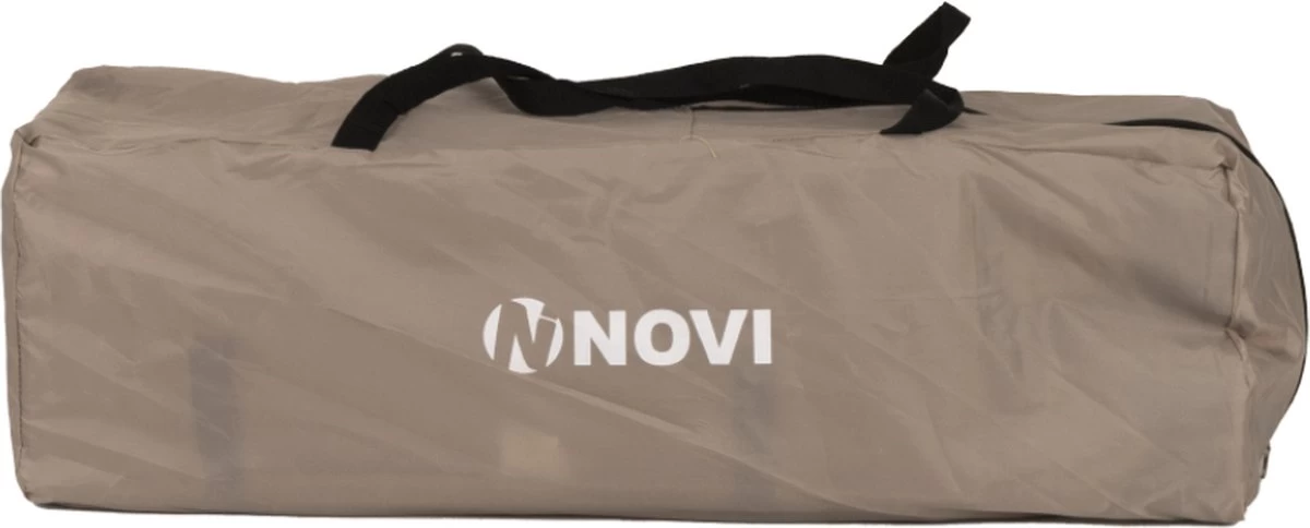 NoviNora is voorzien van een stevig frame met zwarte poten. Het reisbedje wordt geleverd inclusief transporttas, zodat je hem eenvoudig kunt meenemen.